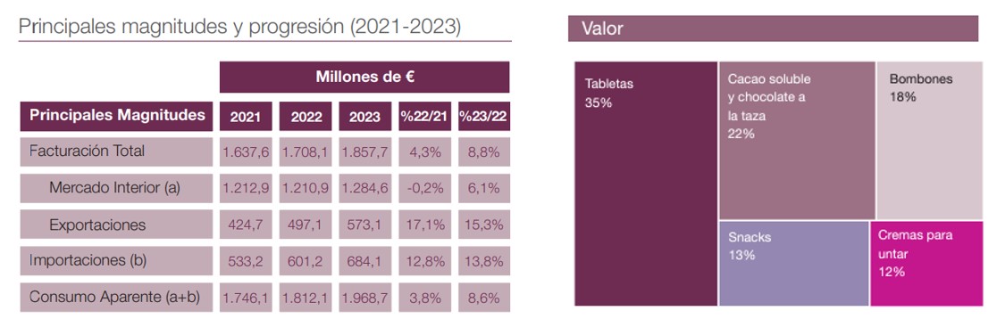 El 13 de septiembre se celebra el Día Mundial del Chocolate, un producto de especial relevancia en nuestro país, tanto por su importancia como sector, como por el aprecio del consumidor. Según los últimos datos extraídos del “Informe del sector del dulce en España 2023” elaborado por Produlce, el cacao y sus derivados son la primera categoría del dulce en España, con 1.968 millones de euros en ventas en términos de consumo en 2023, un 8% de incremento respecto al año anterior.
