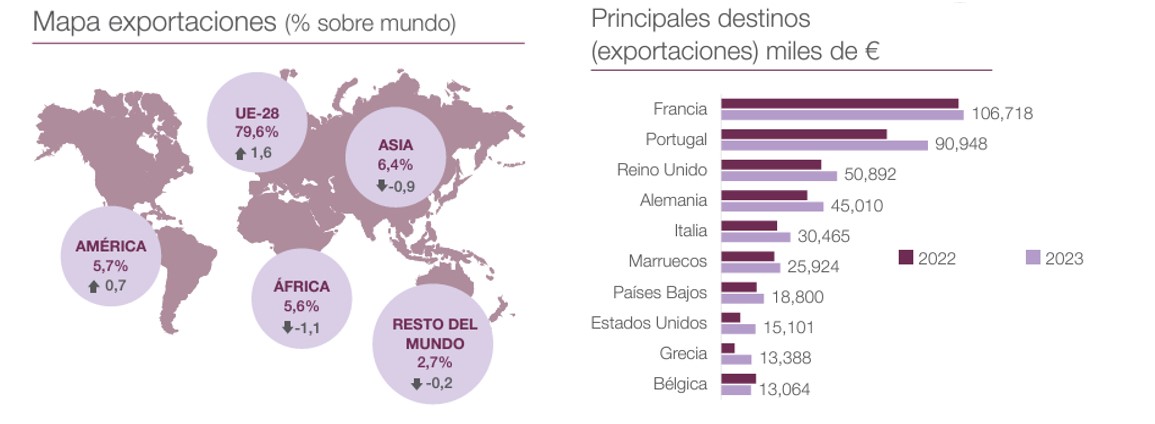 Así, esta categoría ocupa la tercera posición en el conjunto de exportaciones de la industria del dulce, con 573 millones de euros en 2023, un 15% de incremento respecto al año anterior. Francia, Portugal y Reino Unido se consolidan como primeros destinos y Alemania se mantiene en la cuarta posición del ranking de destinos de nuestros productos, todos ellos con un importante crecimiento. Les siguen Italia, Marruecos, Países Bajos, Estados Unidos, Grecia y Bélgica.